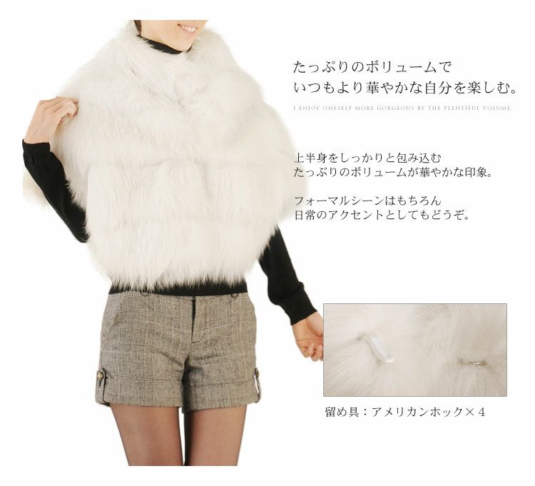 普段着の上にさっと羽織るだけで洗練された印象に。カシミヤやファーなどの上質感あふれるこだわり素材を使用し、一枚羽織るだけで手軽に完成するラグジュアリーで華やかなスタイル。ロング丈からショート丈など様々シーンで使うことができるのでひとつあれば重宝するアイテムです。パーティやコンサートに、また和装にもお使いいただけるアウターです。