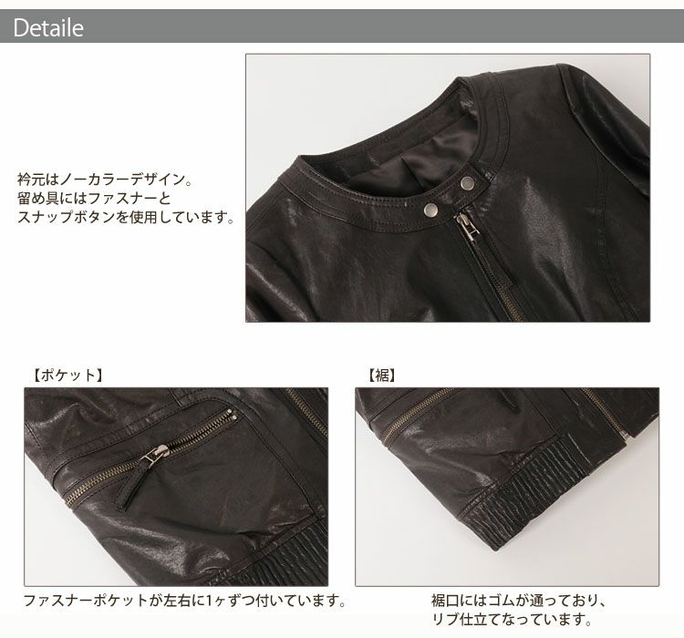 ラムレザー ノーカラージャケット レディース 本革 春 アウター ベジタブル加工 9号 レザージャケット ライダースジャケット レザー ジャケット 春 コーデ 秋 アウター 可愛い 秋 冬 ギフト