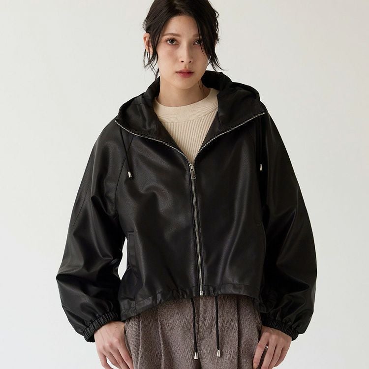 | 商品名:ラム レザー ジャケット フード付き レディース |