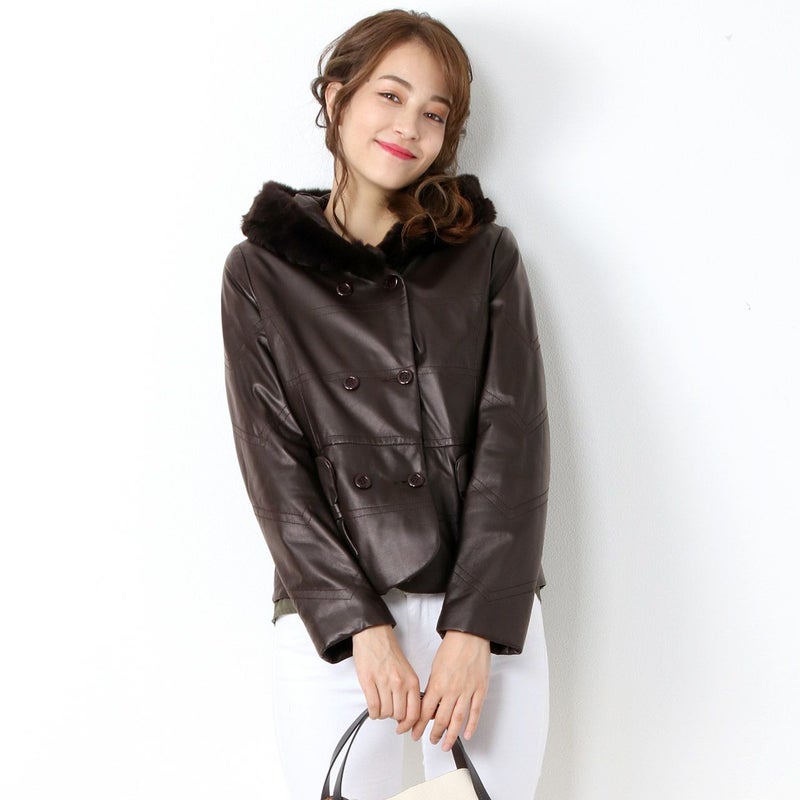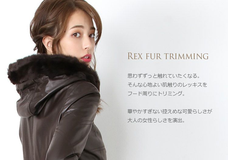 | 商品名:ソフトラム レザー ジャケット フード付 レッキス トリミング / レディース |