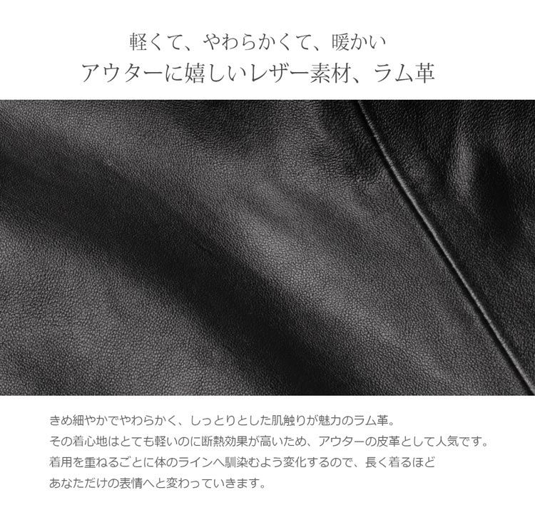 上質なラム革は柔らかく滑らかな肌触りで、着心地はとても軽やか。