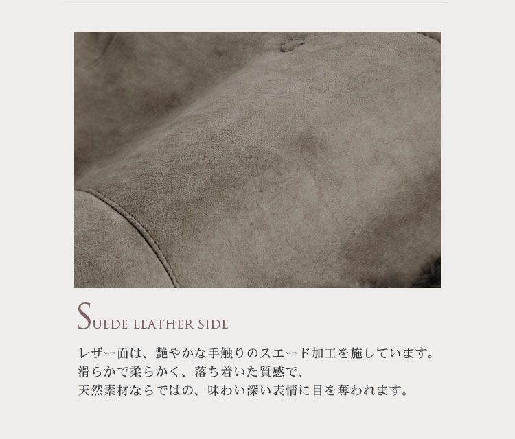 保温性の高い毛皮の、一枚の革を表と裏で使っているWフェイス。革は風を通さず、内側の毛皮は保温力のあるので、着込まずとも暖かいアウターです。 またデザインもシンプルで品のあるデザインを取り揃えていますので、年齢関係なく長く使っていただけるものをご用意しています。
