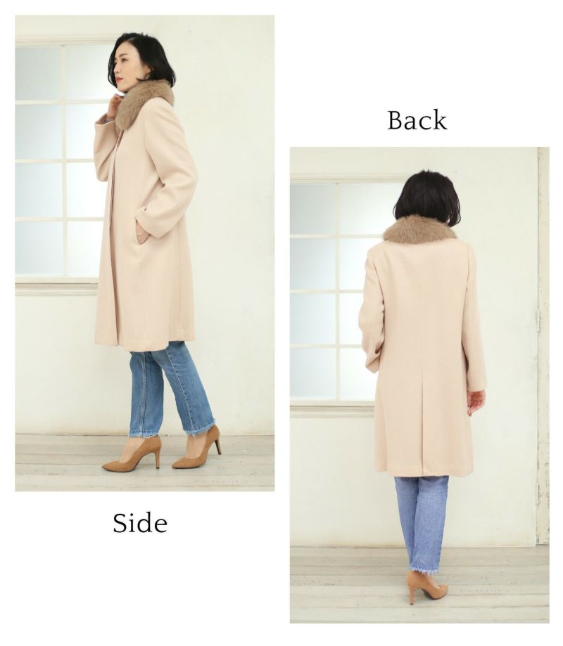 日本製 エアー カシミヤ 100% ロング コート フォックス ファー トリミング ステンカラー 比翼仕立て 撥水 加工 秋冬 レディース ZF