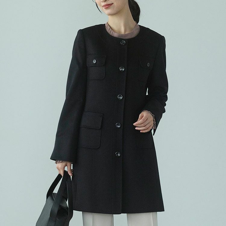 Filomo カシミヤ 100% ノーカラー コート 着丈85cm レディース 秋 冬 ブラック 9号 11号 13号 大きいサイズ 黒 30代 40代 50代 冠婚葬祭 カシミヤコート ノーカラーコート フォーマル ギフト プレゼント