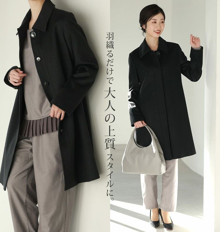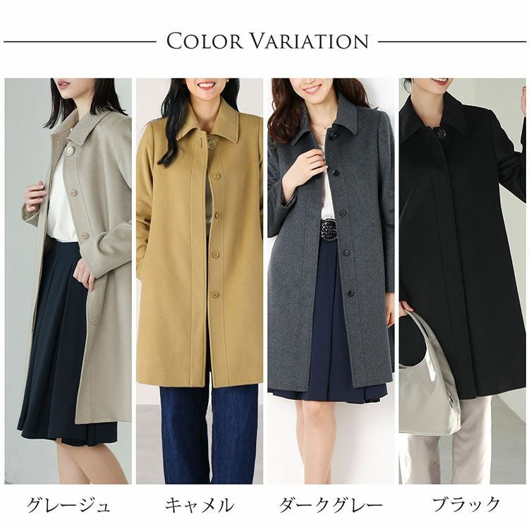 ※キーワード:秋コート 冬コート 秋冬コート 秋冬アウター ステンカラー カシミヤ100% 冠婚葬祭 きれいめ ブラックフォーマル 母 贈り物 キャメル グレー 上品 比翼仕立て 卒業式 入学式