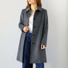 前開きは比翼仕立てで、一番上のボタン以外は表からは見えず、すっきりした印象の残るコートです。