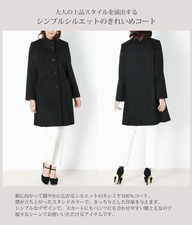 日本製 PIACENZA/ピアチェンツァ カシミヤ100% スタンドカラー コート 着丈90cm レディース 秋 冬 ブラック/キャメル/レッド 30代 40代 50代 プレゼント ギフト