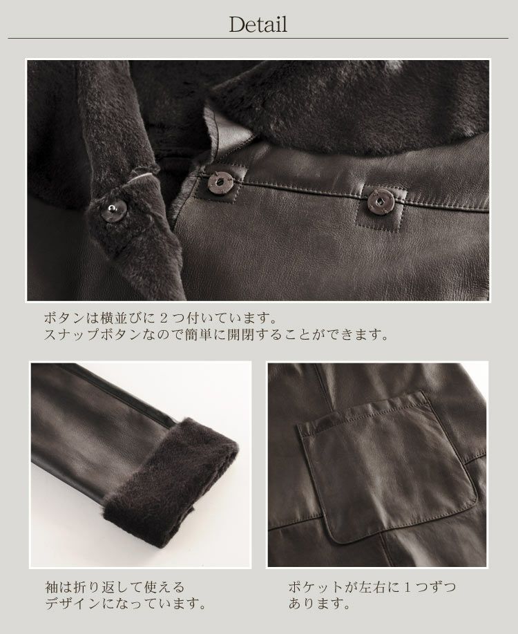 他の画像を見る 29%OFFクーポンSALE ムートン コート ボトルネック 七分袖 オーストラリアムートン ダブルフェイス / レディース 7F ¥ 129,800 税込 (0件) お気に入りに登録する