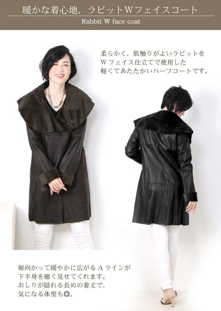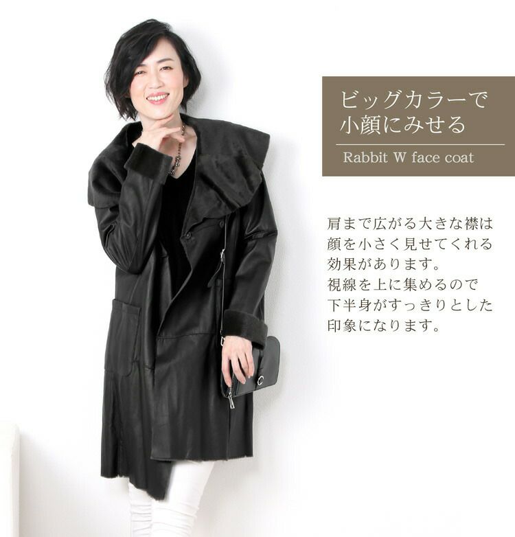 ラビット Wフェイス 軽量コート ビッグカラー/レディース ラビットコート 軽い 冬 一枚仕立て シェアード 軽量 暖かい 毛皮 ファー 本革 女性用 革 Aライン 着やせ 秋 冬 プレゼント ギフト 母 女性 ギフト
