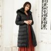 ダウンコート レディース ロング ダウン90% ラクーン ファー フード付き Filomo ブランド 100cm きれいめ ダウン コート ロングコート