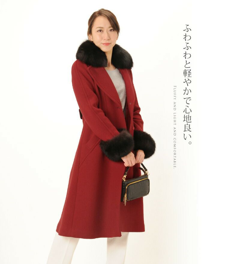 他の画像を見る ロングコート タスマニアリバーウール フォックスファー付き テーラーカラー 着丈106cm レディース 日本製 レッド/モカ/グレー 9号/11号 6F ¥ 77,000 税込 (0件) お気に入りに登録する