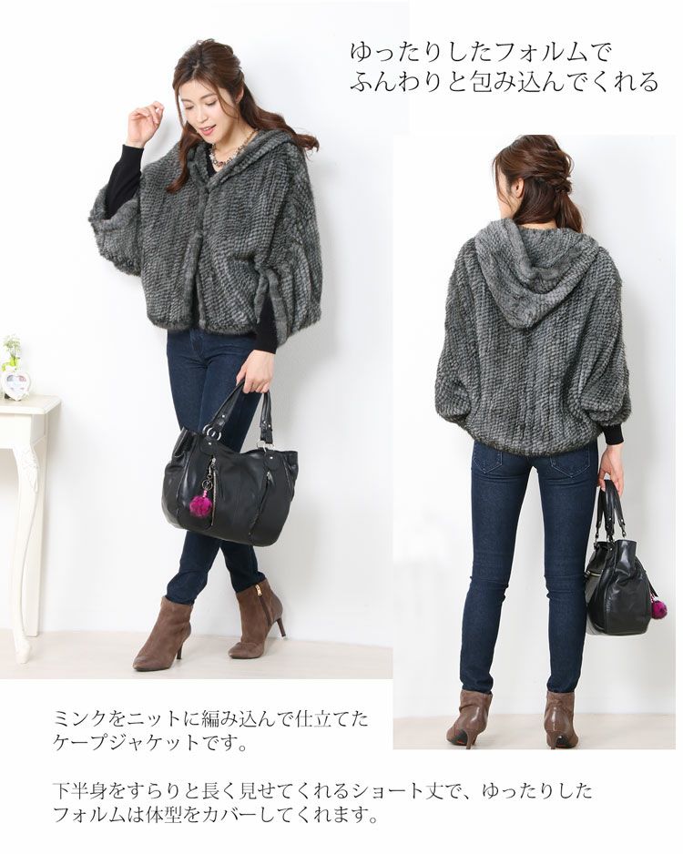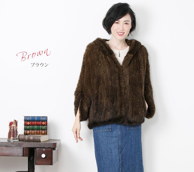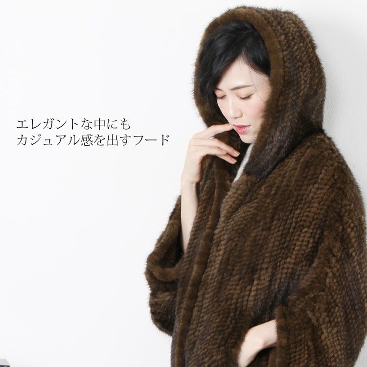 ミンク ファー ケープ ジャケット 編み込み フード デザイン ドルマン スリーブ ボレロ グレー/ブラウン/ブラック 秋 冬 母 女性 プレゼント ギフト