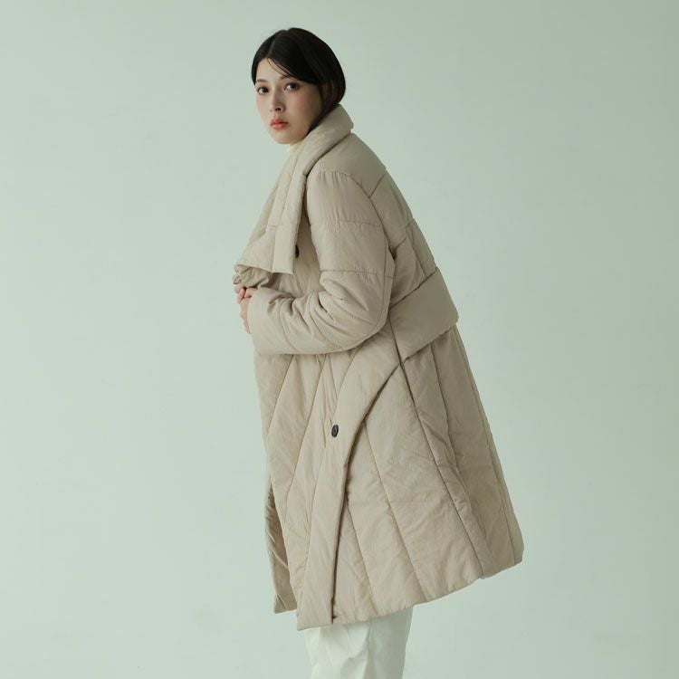 詰物には中綿を使用して、厚みを控えめに着ぶくれしにくい中綿コートです。