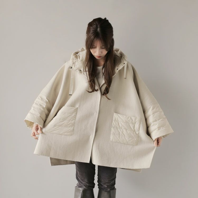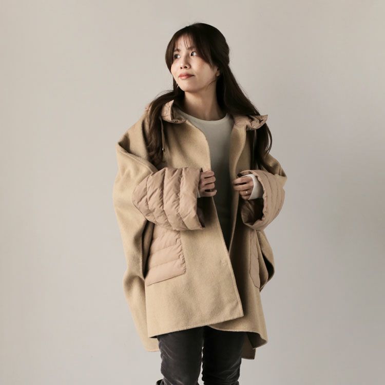 ウール配合のポンチョにお洒落な異素材ドッキングが施されたアウター。ポンチョ ケープポンチョ フード付き ポンチョ ケープポンチョ フード付き ウール コート レディース ケープ ウールコート クリスマス ギフト プレゼント (08000330r)