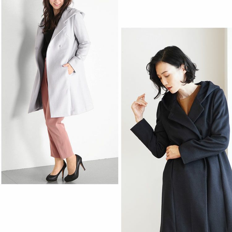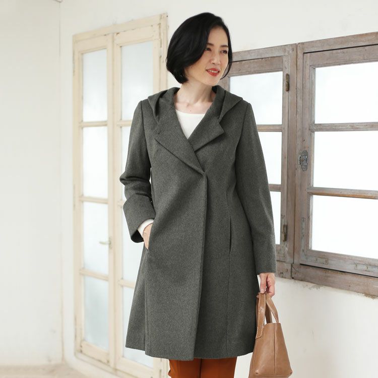 フーデッド コート レディース ウール 混 ダブル仕様 6F