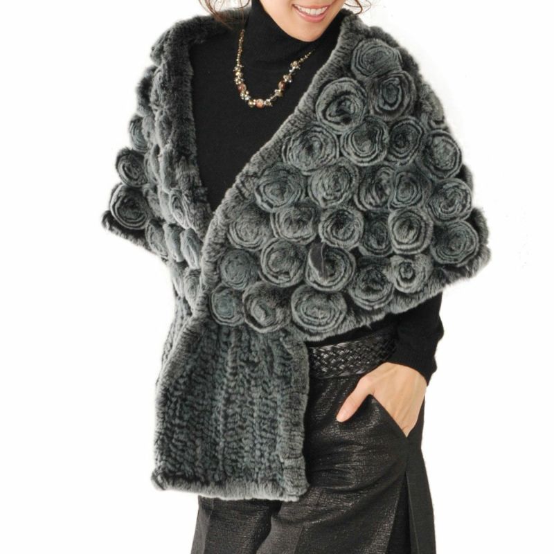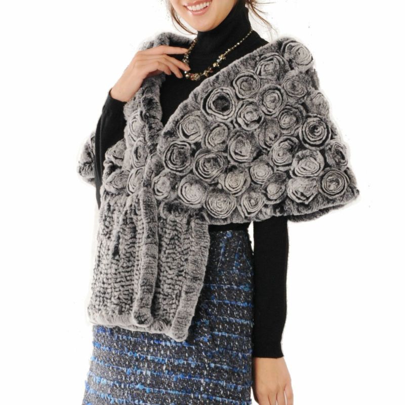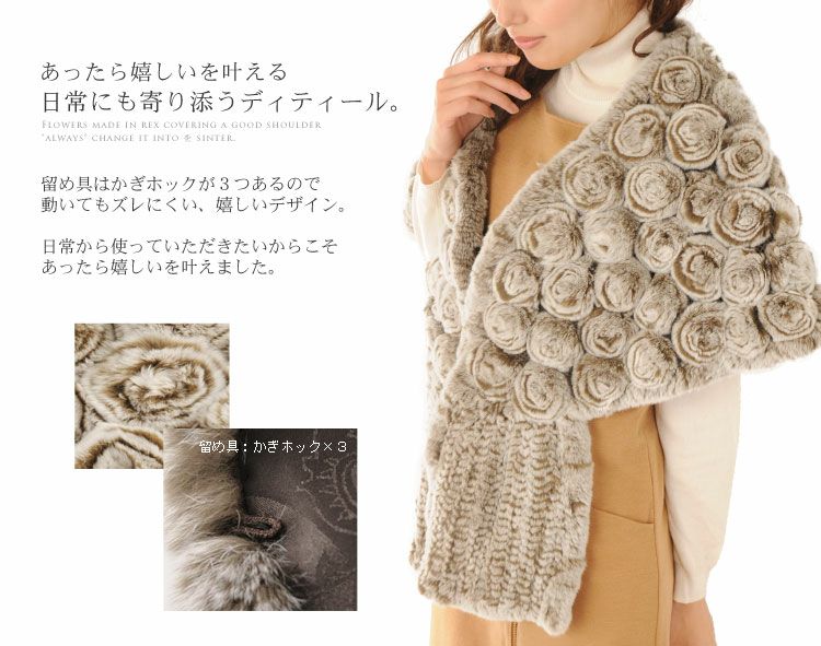 レッキス ケープ ストール フラワー デザイン/レディース 毛皮 ファー ストール 花 お花 羽織りもの カジュアル シック アウター 毛皮 大判 母 女性 プレゼント ギフト
