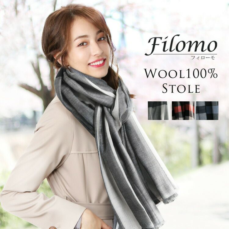 Filomo ストール 大判 レディース チェック ウール【ネコポスで送料無料】 7F