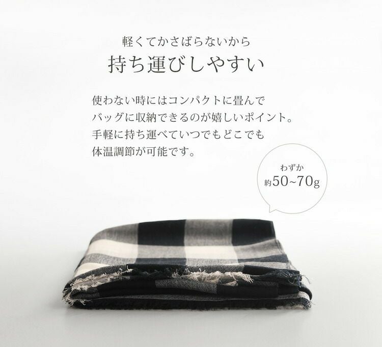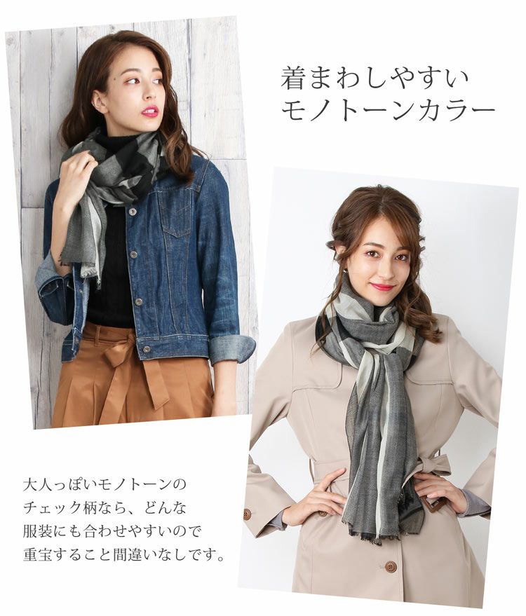コーディネートのアクセントにぴったりなチェック柄の大判ストール。