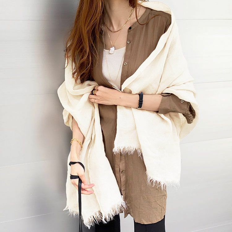 ざっくりとしたラフな風合いとボリューム感を楽しめるリネン100%ストール。