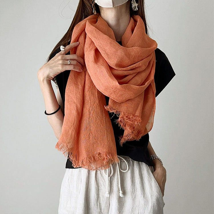 ※キーワード:麻 麻ストール 大判リネンストール 春ストール 夏ストール 秋ストール 日よけ 紫外線対策 羽織り 涼しい 手洗い 洗濯 お家で洗える 白 黒 エクリュ ピンクベージュ モカブラウン グレージュ サーモンピンク トープ ブラック