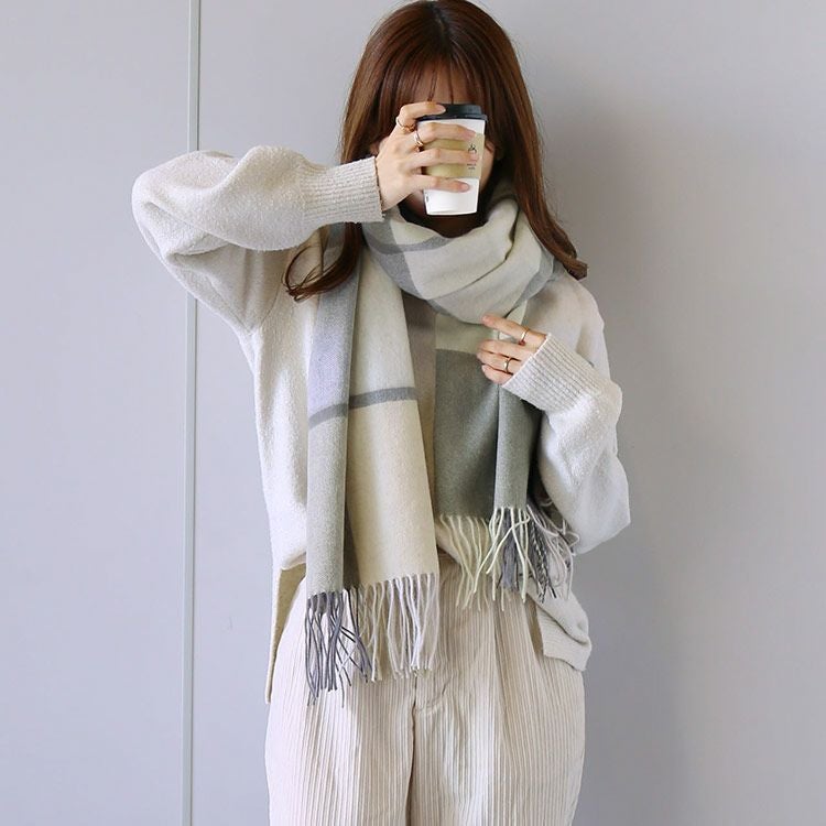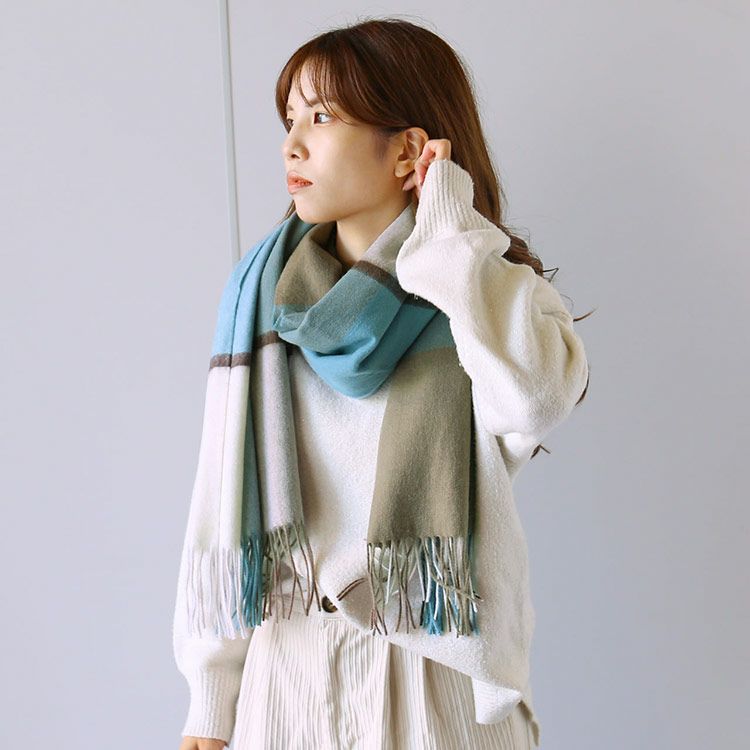 ウール 100% ストール マフラー レディース 大判 厚手 チェック パステルカラー (8100-35r)