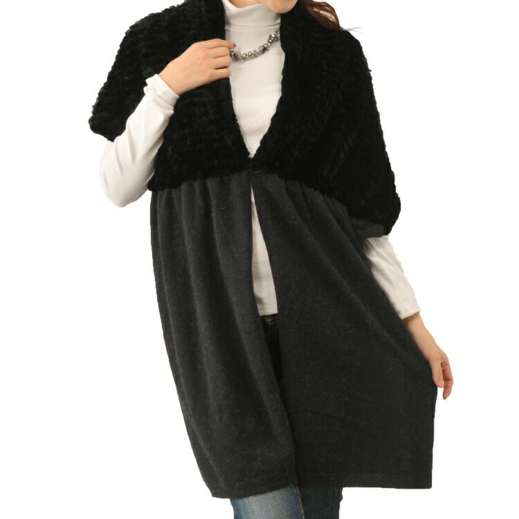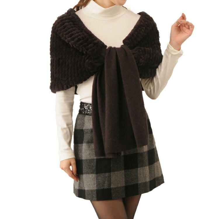 フリル ストール フリンジ付き ラビットファー トリミング / レディース 7F