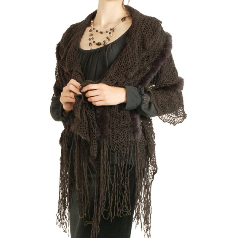 | 商品名:フリル ストール フリンジ付き ラビットファー トリミング / レディース |