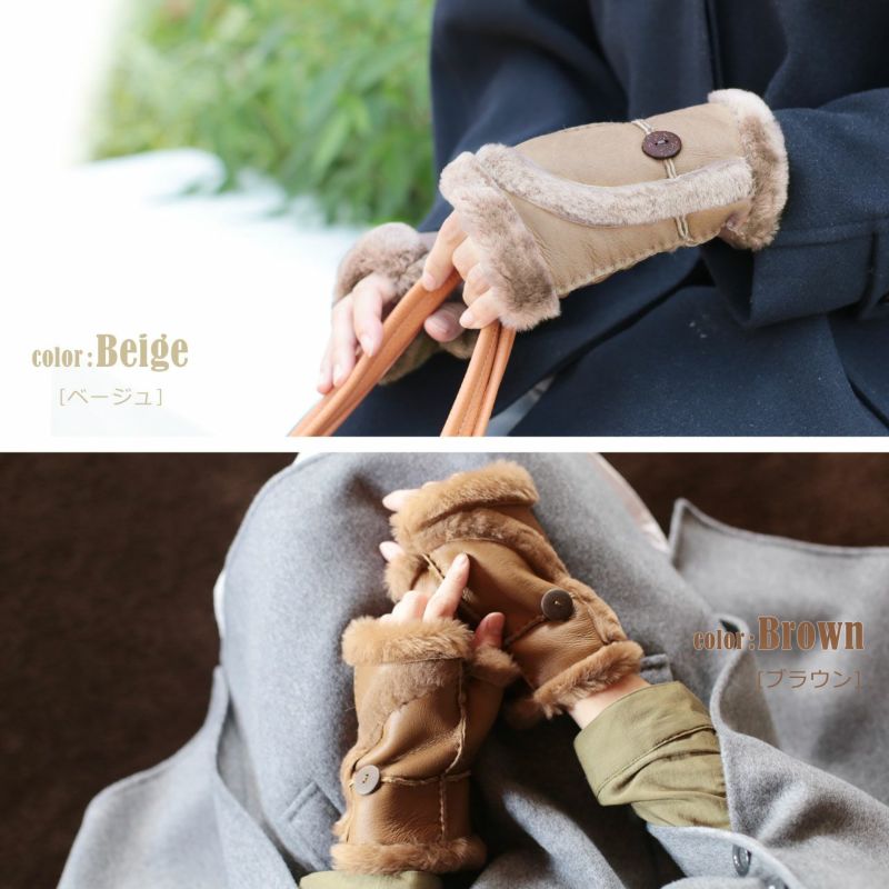 ムートン ファー 手袋 指抜き デザイン レディース【ネコポスで送料無料】 7F