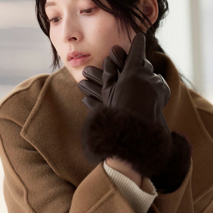 カシミアのワインカラーの大判マフラーとあわせて購入しました。皮の色も鮮やかで、手もすっきりと細く見える気がします。温かさも抜群です。本当に買ってよかったです。
