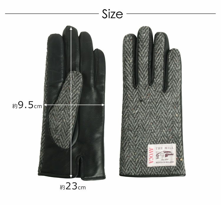 甲:毛100% 掌:羊革(人差指と親指にスマホ対応の伝導羊革使用) |
