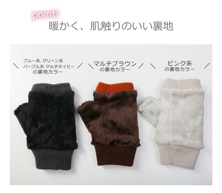 AVOCA 指ぬき 手袋 レディース グローブ スマホ対応 裏起毛 フリーサイズ ピンク パープル マルチカラー スマホ手袋 タッチパネル 対応 ギフト ピンク ブラウン グリーン ブルー プレゼント 秋冬 ギフト