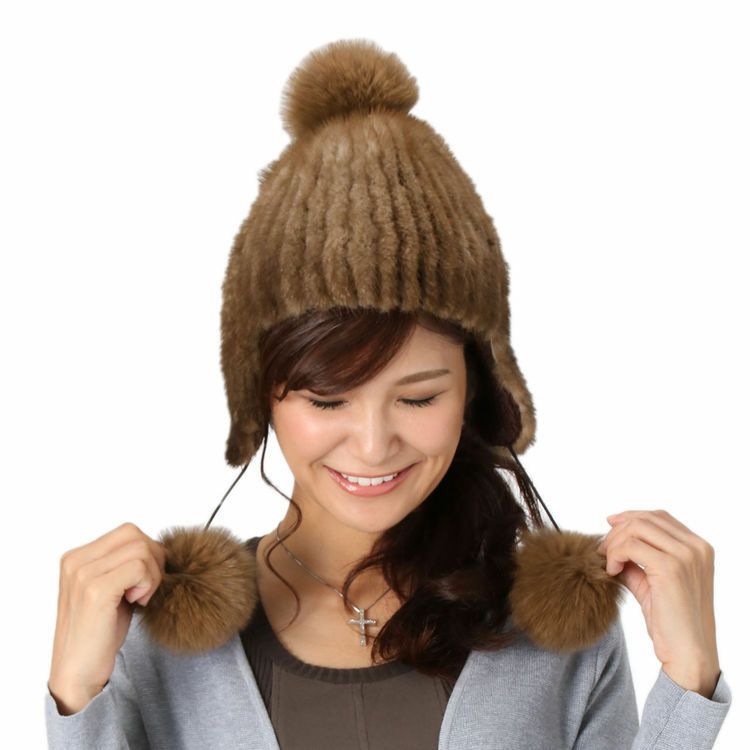 | 商品名:ミンク ファー ボンボン付き 帽子 フォックス / レディース |