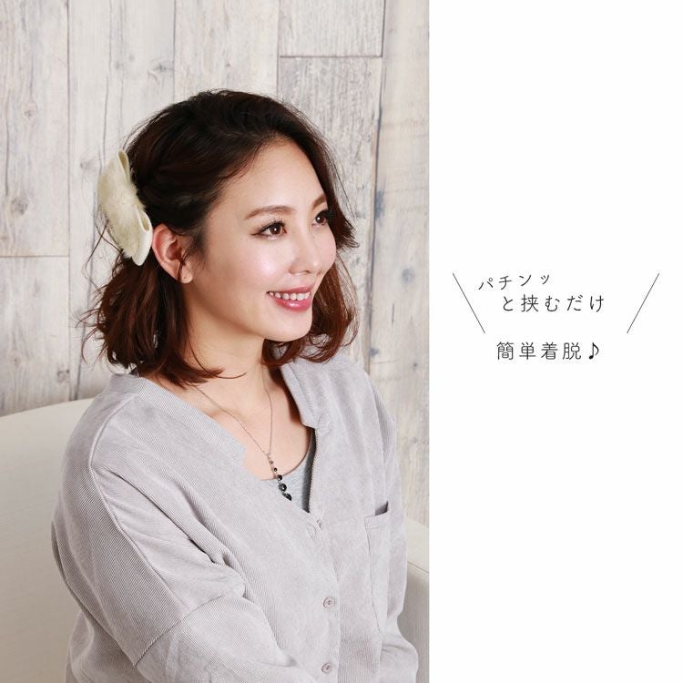 普段のまとめ髪にパチンと挟むだけなので不器用さんや、ヘアアレンジが苦手な人でも簡単着脱♪とっても手軽&簡単にヘアスタイルが完成しちゃう優秀お洒落アイテムです。大きすぎず小さすぎないサイズ感もかわいく、フォーマルにも普段のコーディネートにも使えます。