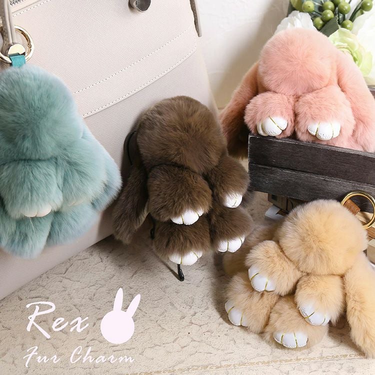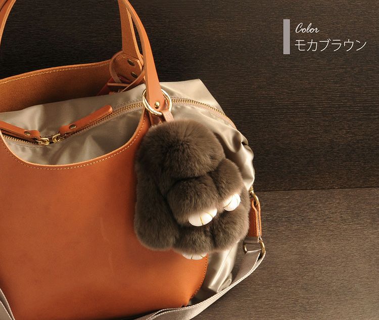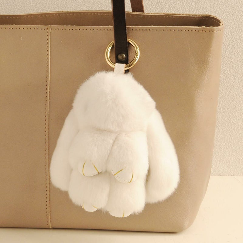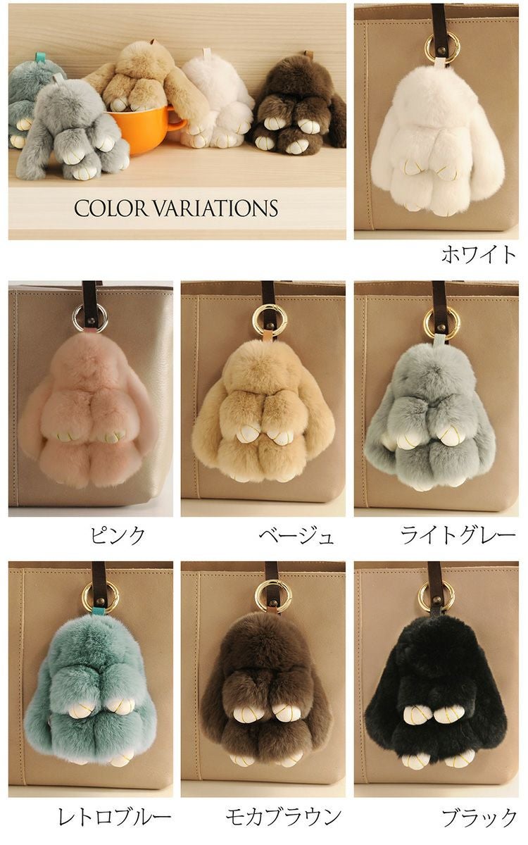 2. うさぎ ファー チャーム キーホルダー レディース バッグチャーム 7F