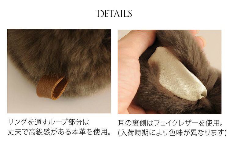垂れミミのうさぎをモチーフにした、ころんと可愛らしいファーアイテム。