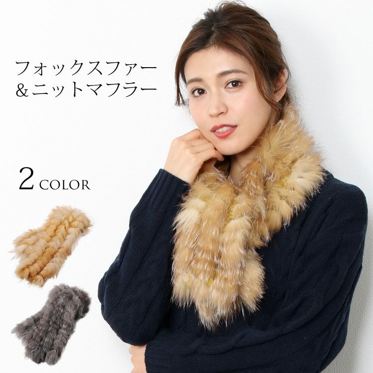 素材 | 毛皮:フォックス ニット:アクリル70%、綿30% |
