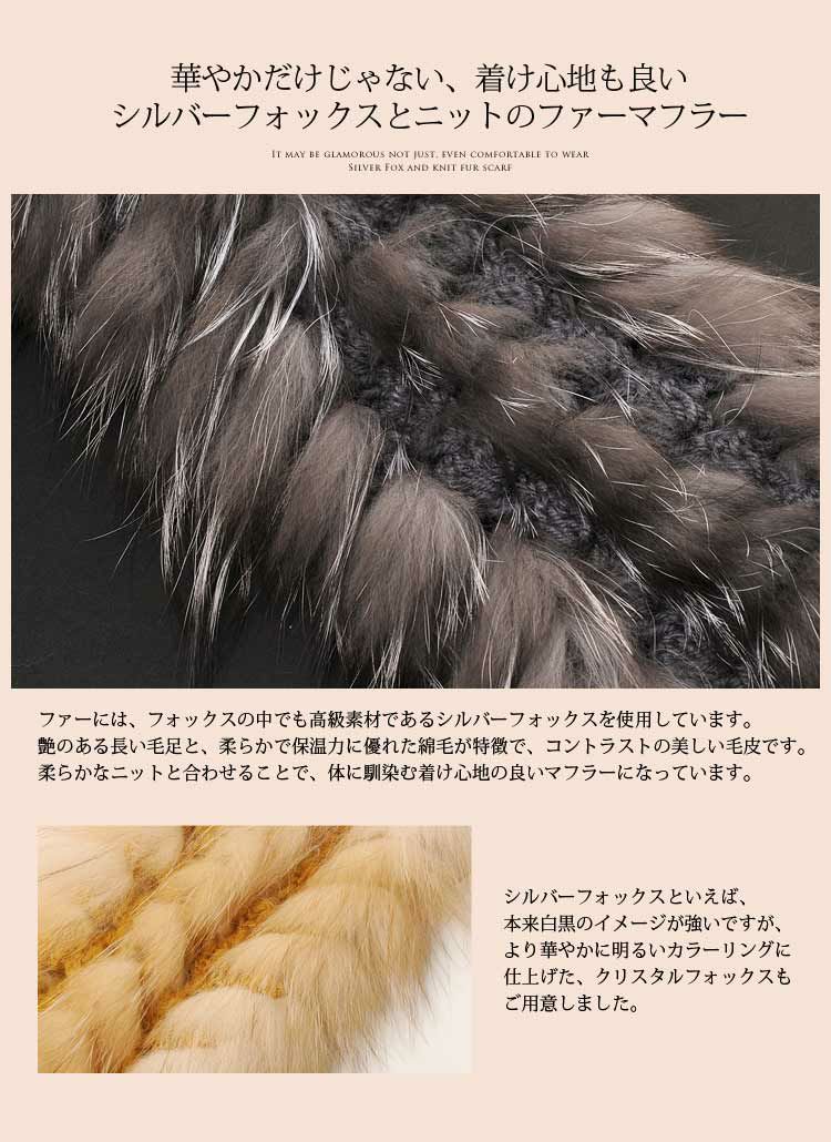華やかだけじゃない、着け心地も良いシルバーフォックスとニットのファーマフラーです。