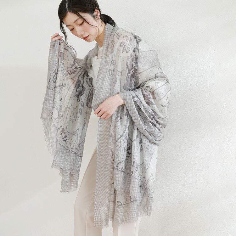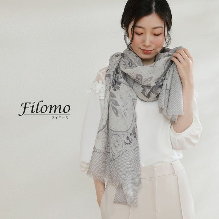Filomo プリント カシミヤ 100% 大判 ガーゼストール 7F