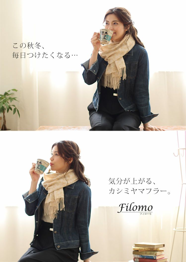 Filomo カシミヤ 100% マフラー フリンジ付き 7F 【名入れ刺繍可能】