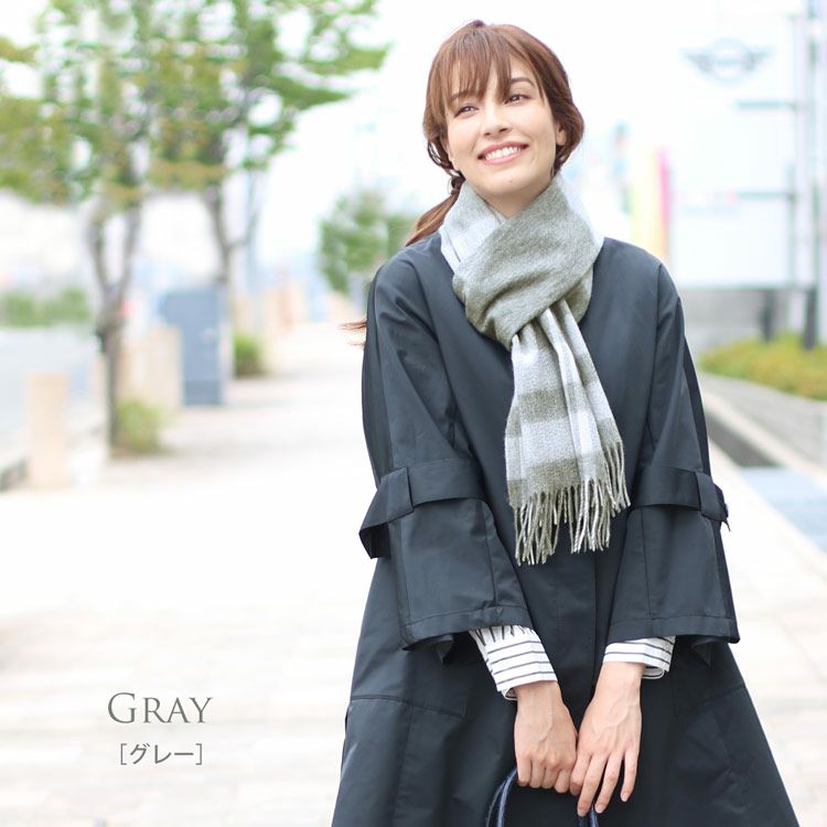 カシミヤ 100% マフラー チェック柄 カラー グレー ネイビー