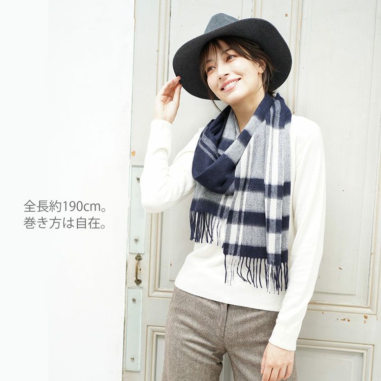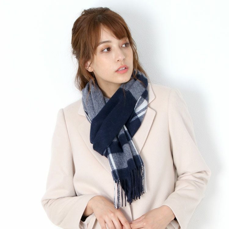 カシミヤ 100% マフラー チェック柄 レディース ネイビー