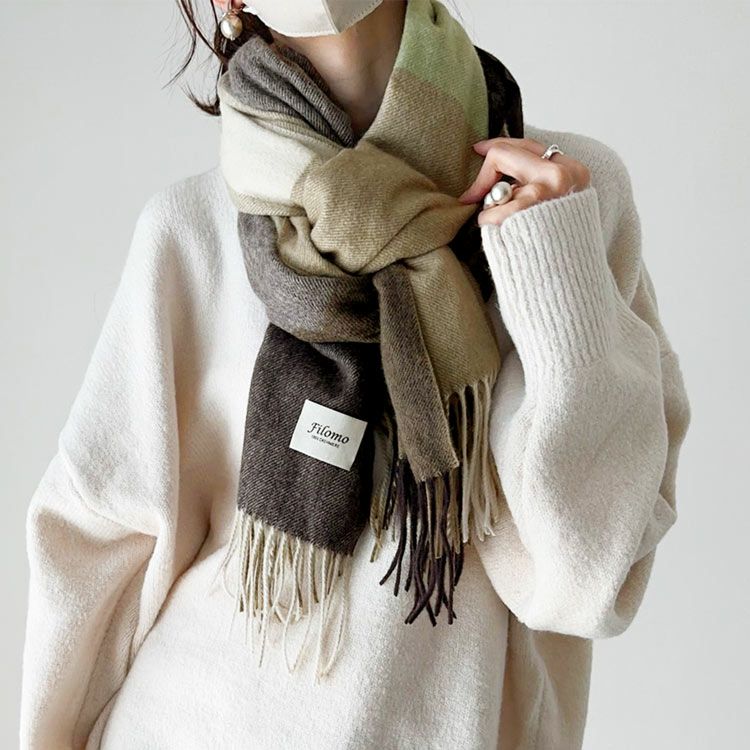 ※キーワード: チェック柄 チェック柄ストール 大きめ カシミア 極やわカシミヤストール ごくやわ
