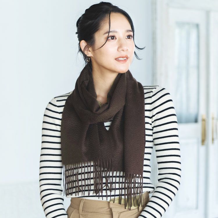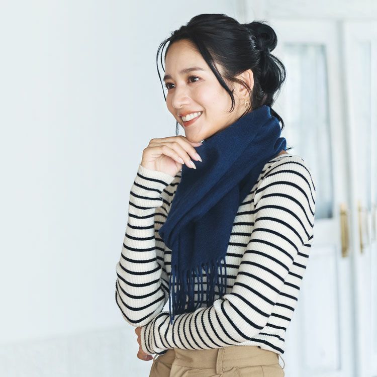 極上のカシミヤを100%使用しているのでとっても暖かで柔らかな肌触り。 揺れるフリンジが可愛らしいデザイン 『繊維の宝石』と呼ばれるカシミヤを100%使用しています。 保温性・保湿性に優れており、とても暖かな着け心地です。 ふんわり柔らかな手触りと上品な光沢が魅力的な素材です。 無地でベーシックなデザインだからどんなコーディネートにも合わせやすい! 幅広いコーディネイトに合わせられるから、毎日使える優秀なアイテムです。