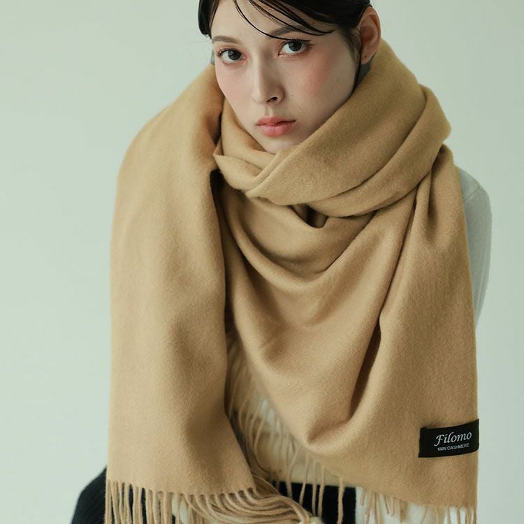6. Filomo カシミヤ 大判ストール 100% レディース 内モンゴル産 厚手 無染色 【名入れ刺繍可能】 7F (6772r)