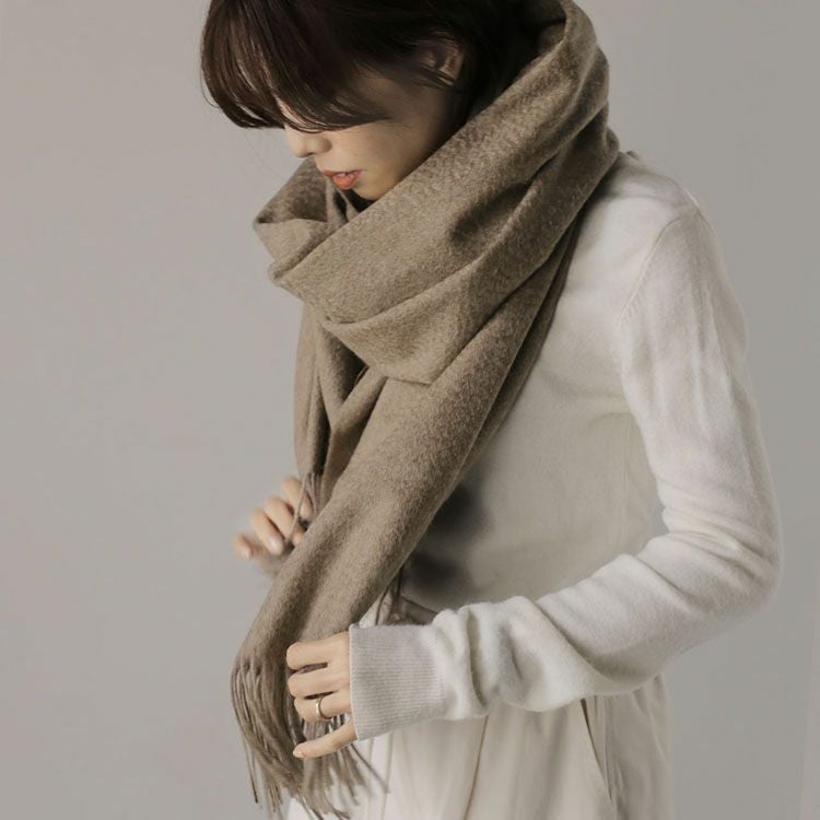 シンプルなデザインなので、二重巻きなどのアレンジはもちろん、ひざ掛けや肩掛けとしても活躍。
