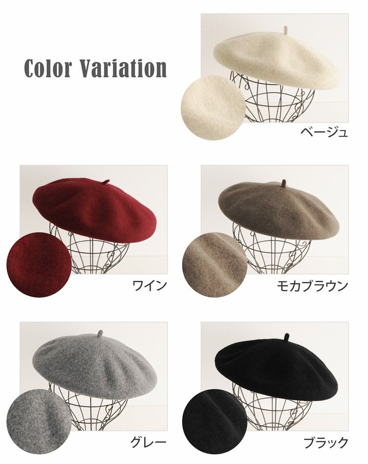 | 商品名:メリノウール 100% ポッチ付き ベレー帽 レディース |