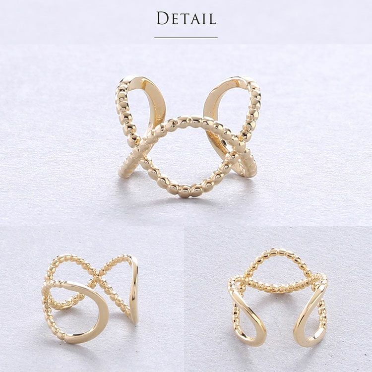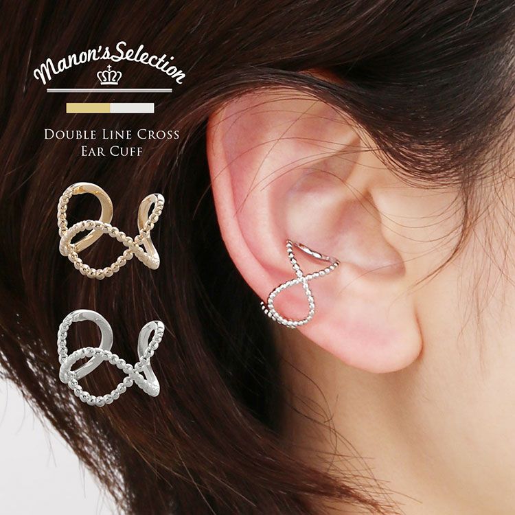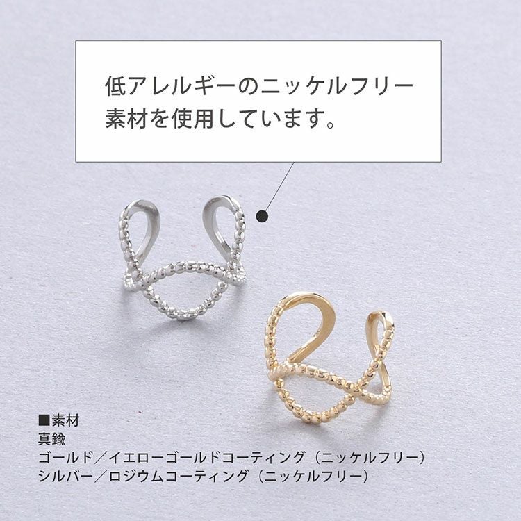 ダブル ライン クロス イヤーカフ ニッケルフリー 低アレルギー 素材 金属アレルギー