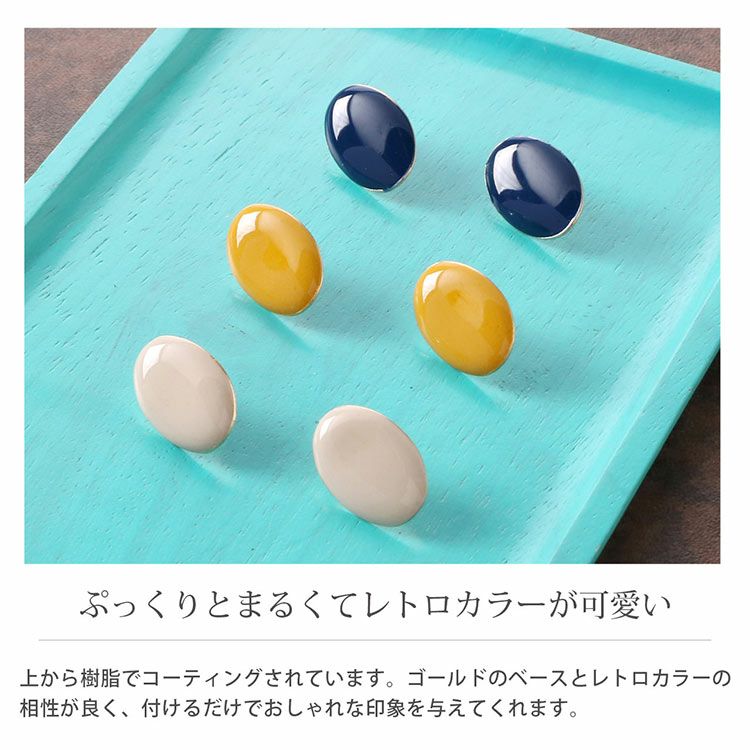 ぷっくりとまるくてレトロカラーが可愛いイヤリング。