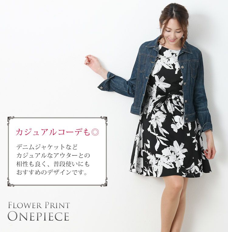 パーティードレス 花柄 フラワープリント オケージョン フレアワンピース レディース オフホワイト/ブラック 母 女性 プレゼント ギフト