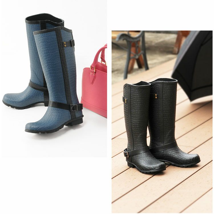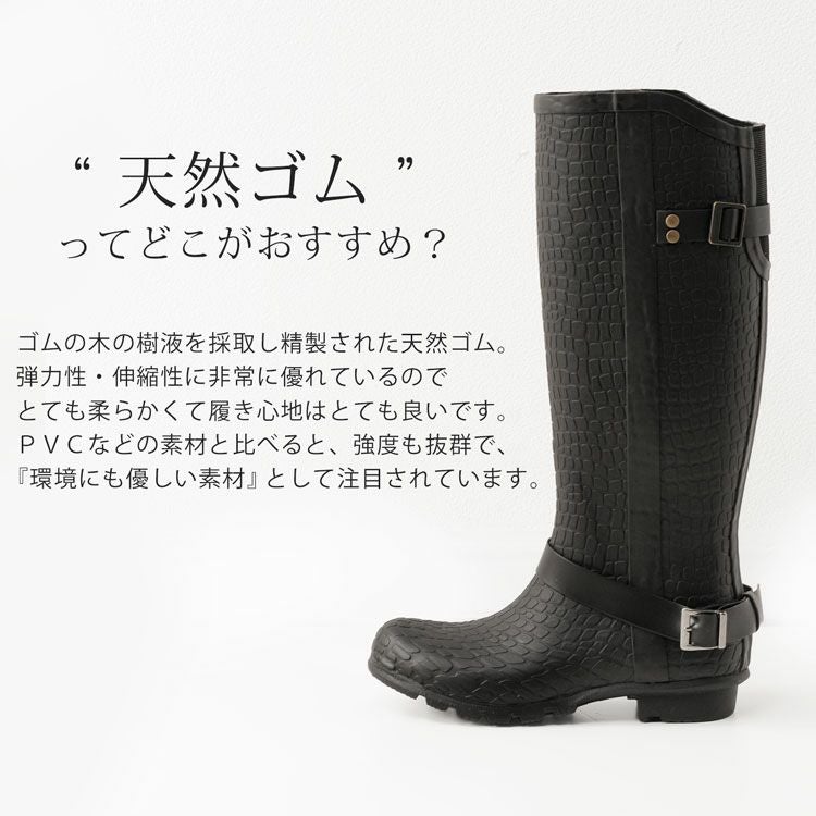 | 商品名:レインブーツ レディース 完全防水 ブランド ロング クロコダイル 型押し レインシューズ je'coule |
